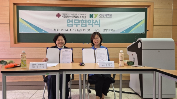 [충청뉴스큐] 서천군장애인종합복지관과 건양대학교 사회복지학과이 건양대학교 인문학과에서 양 기관의 상호교류 및 협력관계 유지를 위한 협약을 체결했다.