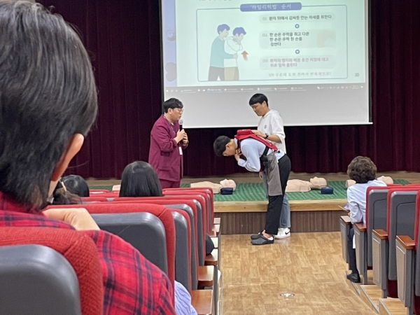전문 심폐소생술 인력들에 의한 실제 사례 내용과 함께 심폐소생술의 기본 원리와 실제 상황에서의 적절한 응급 처치 방법을 연습했다.