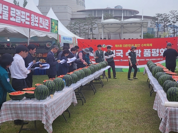제1회 전국 수박 품평회는 ‘제5회 대한민국 함안 수박축제’와 연계해 열렸으며 전국 시군별 수박재배 농가로 시군 수박생산자연합회 추천을 받은 농가가 참여했다.
