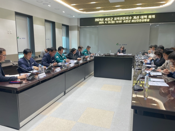 [충청뉴스큐] 서천군이 지난 29일 군청 재난안전상황실에서 ‘2024년 지역안전지수 개선 대책 회의’를 개최했다지역안전지수는 행정안전부가 지자체별 교통사고 화재, 범죄, 생활안전 등 4개 분야의 안전 역량을 5개 등급으로 분류한 결과를 매년 공표하고 있으며 군은 교통사고·범죄 분야 4등급, 생활안전분야 3등급, 화재분야 2등급을 받았다.