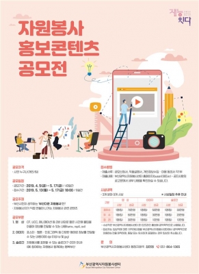 [충청뉴스큐] 부산시는 시민과 함께 만들어나가는 부산다운 자원봉사 브랜드 구축과 다양한 콘텐츠 개발을 위한 ‘자원봉사 홍보 콘텐츠 공모전’을 한다고 밝혔다.