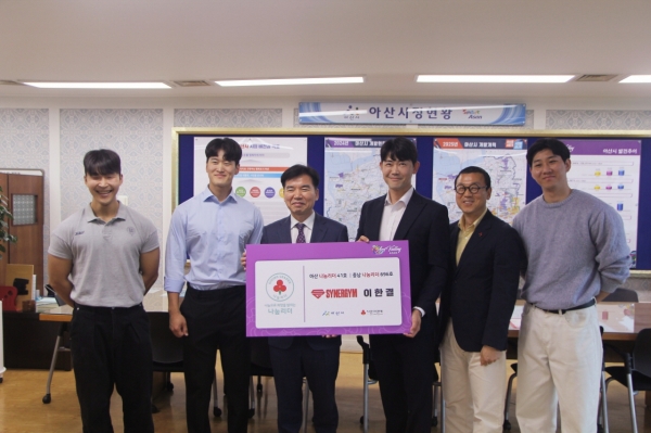 이날 전달식에는 이한결 대표와 조일교 아산시부시장, 충남 사회복지공동모금회 이훈 모금사업 팀장 및 관계자가 참석했다.