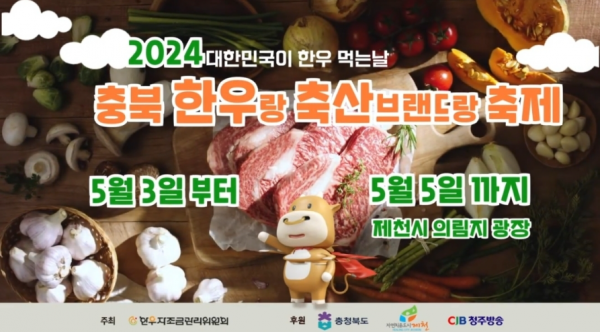 [충청뉴스큐] 전국한우협회 충북도지회주관 ‘2024년 충북 한우랑 브랜드랑 축제’가 5월 3일부터 5일까지 3일간 제천시 의림지 수변공원에서 개최된다.