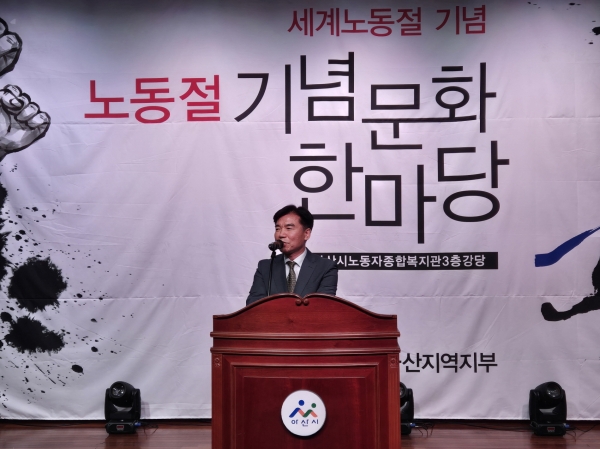 [충청뉴스큐] 조일교 아산시 부시장이 지난 3일 아산시 노동자종합복지관에서 열린 ‘제134주년 노동절 기념 문화한마당 행사’에 참석해 노동자들의 노고를 격려했다.