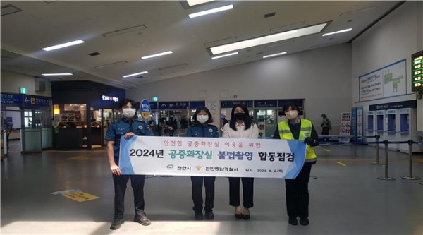 [충청뉴스큐] 천안시가 최근 천안동남경찰서와 함께 다중이용시설 공중화장실 불법촬영 합동점검을 실시했다고 7일 밝혔다.