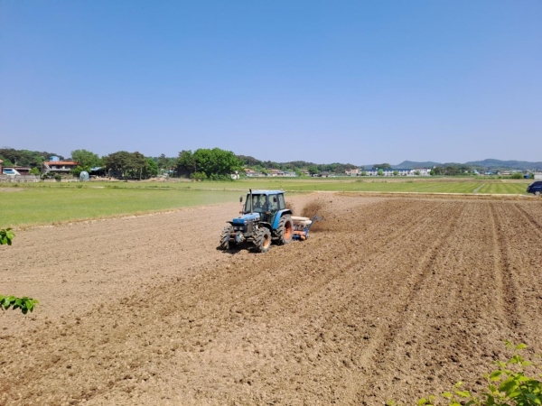 [충청뉴스큐] 부여군 세도면 귀덕2리 표희윤 농가는 지난 3일에 청송리 963-5 등 4필지 약 11,000㎡에 벼 건답직파를 실시했다.