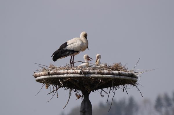 황새 부부는 연 1회 산란을 하며 산란 시 평균 4.3개 알을 낳아 평균 3.5마리를 키워낸다.