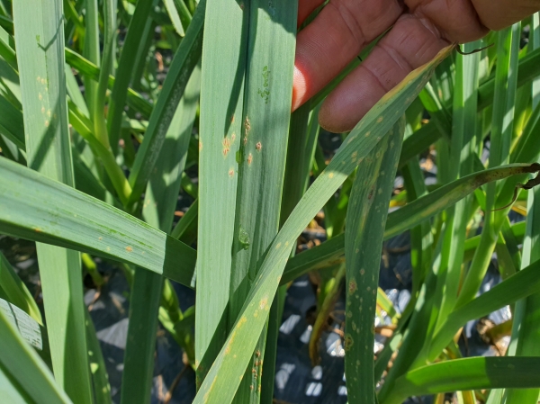 [충청뉴스큐] 서천군농업기술센터가 최근 잦은 강우와 5월 기온상승으로 인한 마늘 잎마름병·녹병, 양파 노균병 확산 우려로 병해충 관리 중점 지도에 나섰다.