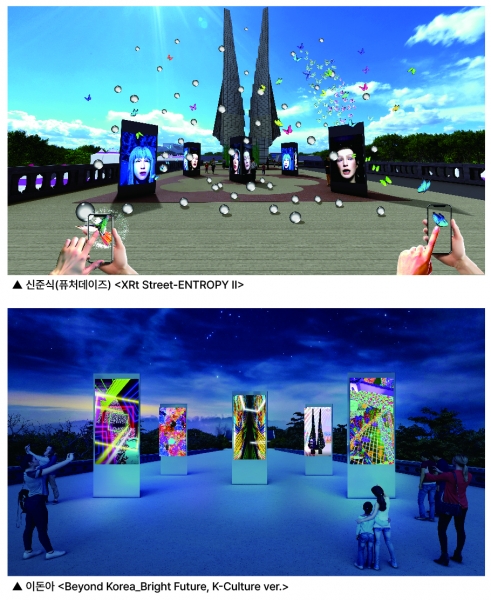 채병록 ‘천안중첩전경도’는 천안의 흥타령 민요에서 영감을 받아 한국적인 요소를 현대적인 색채와 구성으로 재해석한 그래픽을 선보이게 되며 티안 작가는 겨레의 탑에 내재된 화합과 번영에 대한 염원을 재해석해 ‘행복한 울림’을 선보이며 우리 전통에 내재된 길상적 요소를 디지털과 융합해 관람객을 환상의 세계로 초대한다.