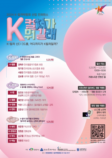 [충청뉴스큐] 천안문화재단은 오는 5월 22일 개막을 앞둔 K-컬처박람회에 ‘K-컬처 산업 컨퍼런스’ 사전신청자를 모집한다고 밝혔다.