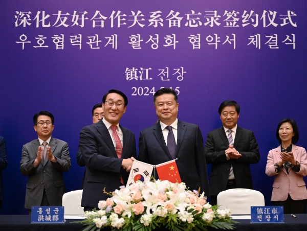 이날 협약을 통해 홍성군과 중국 전장시는 무역·문화·관광·교육 등 다방면에 걸쳐 교류와 협력을 강화하고 청소년·문화예술 등의 교류사업 발굴 방안을 마련할 예정이다.