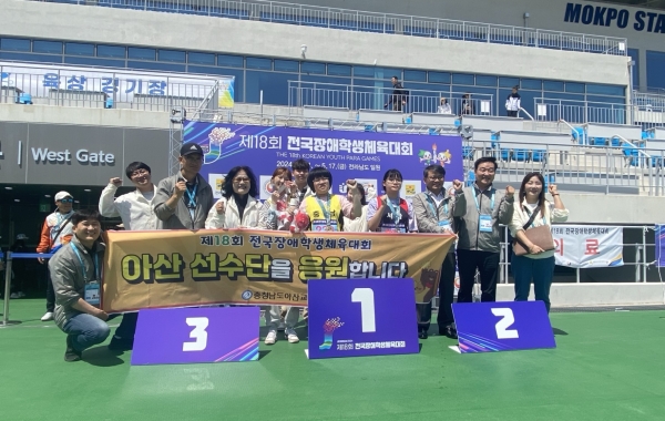 [충청뉴스큐] 지난 5월 14일부터 17일까지 4일간 전라남도 일원에서 개최된 제18회 전국장애학생체육대회에 출전한 충남 아산시 선수단은 단체전인 농구 중학교 팀 금메달을 비롯해 금 2개, 은 6개, 동1 0개로 총 18개 메달을 획득했다.