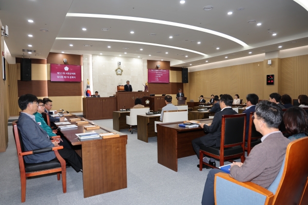 김경제 의장은 개회사를 통해“각종 조례안, 동의안 및 제2회 추가경정예산안 등을 꼼꼼하게 잘 살펴 적재적소의 사업에 예산이 효율적으로 쓰일 수 있도록 해달라”고 말하며“제9대 서천군의회 전반기가 마무리되고 있는 지금, 계속 해서 군민 여러분 곁에서 보고 듣고 실천하는 의회가 되도록 정진해 나가자”고 말했다.