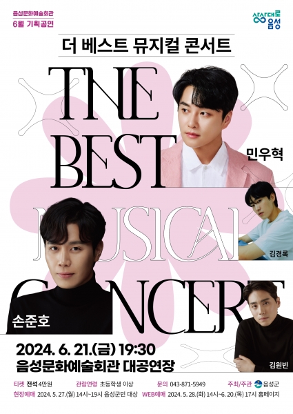 [충청뉴스큐] 음성군은 오는 6월 21일 금요일 저녁 7시 30분 음성문화예술회관 6월 기획공연으로 ‘더 베스트 뮤지컬 콘서트’를 진행한다.
