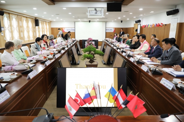 [충청뉴스큐] 금산군은 지난 20일 금산군청 상황실에서 스페인·페루·슬로베니아·앙골라·우크라이나·모로코·튀르키예·오스트리아 등 주한외교대사 가족 20여명을 금산세계인삼축제 명예홍보대사로 위촉했다.
