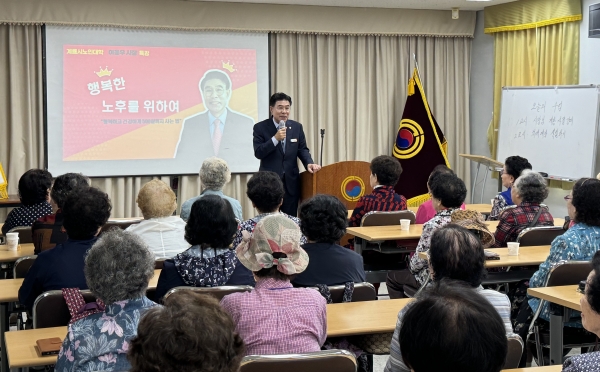 [충청뉴스큐] 이응우 계룡시장은 21일 계룡시 노인대학에서 수강생 120여명을 대상으로 ‘행복한 노후를 위해’라는 주제로 특별 강연을 열었다.