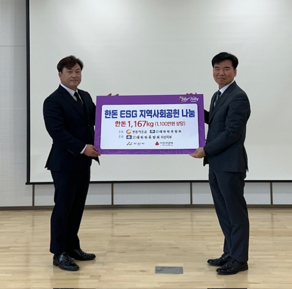 후원물품은 ‘한돈 ESG 지역사회공헌 나눔’의 일환으로 마련됐으며 충남사회복지공동모금회를 통해 취약계층 및 공동생활가정, 지역아동센터, 결식 위험 가구에 무료 급식을 제공하고 있는 사회복지단체 등에 전달된다.