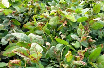 이는 콩 꼬투리가 달리는 시기부터 잦은 비와 더불어 세균병에 약한 품종을 심고 있기 때문이다.