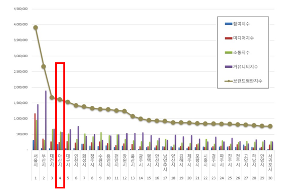 [충청뉴스큐] 충남 아산시가 5월 한국기업평판연구소의 대한민국 도시브랜드 평판 순위에서 전국 4위를 차지하면서 이례적 결과에 관심이 쏠리고 있다.