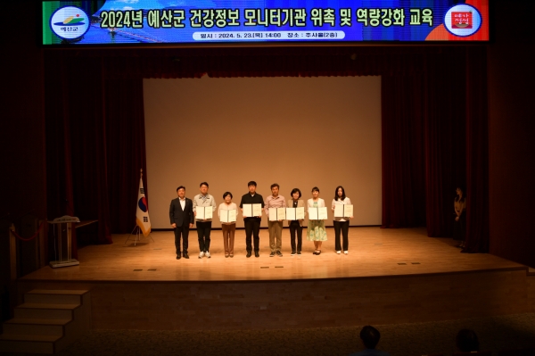 [충청뉴스큐] 예산군보건소는 지난 23일 군청 추사홀에서 2024년 예산군 건강정보 모니터 기관 위촉 및 역량강화 교육을 진행했다.