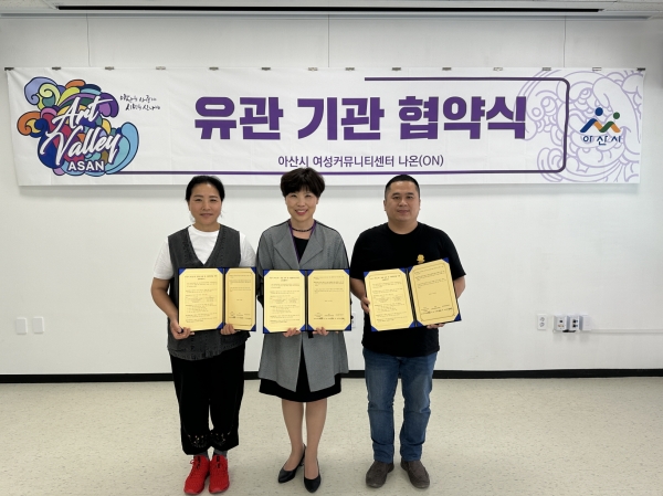 [충청뉴스큐] 아산시 여성커뮤니티센터 ‘나온’은 지난 23일 도배 창업 기초 교육과정 운영을 위해 대성도배타일목공건축학원 및 대성종합인테리어와 업무협약을 체결했다.