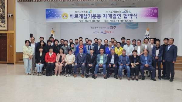 [충청뉴스큐] 바르게살기운동 제천시협의회와 바르게살기운동 서귀포시협의회는 지난 29일 서귀포시청 너른마당에서 관계자 100여명이 참석한 가운데 한마음 교류 행사를 가졌다.