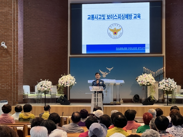 [충청뉴스큐] 당진경찰서는 5월 30일 어르신 교통사고 및 보이스피싱 예방을 위한 당진감리교회 노인대학 어르신 200여명 대상 서장 교통안전 특별강의를 실시했다.