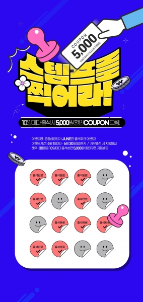 이번 행사는 6월 1일부터 30일까지 e홍성장터에 출석체크를 하는 고객에게 10일마다 5,000원 할인쿠폰을 증정하며 한 달간 최대 15,000원의 할인쿠폰을 받을 수 있다.