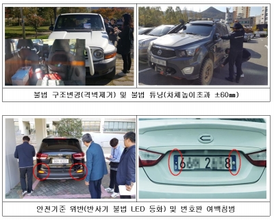 단속 대상은 불법명의 자동차, 주택가 등에 장기간 무단 방치 자동차, 정기검사를 받지 않은 자동차, 구조변경 승인 없이 HID전조등을 설치하거나 소음기를 불법으로 개조한 자동차, 안전기준·번호판 위반 자동차 등 법규위반 자동차이다.