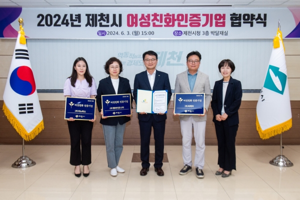 시 관계자는 “제천시는 일과 가정의 양립을 위한 여성이 행복한 일터 조성을 위해 여성친화기업인증제를 지속적으로 추진할 예정이다”며 “인증제를 통해 양성 평등한 문화가 조성될 수 있도록 최선을 다하겠다”고 말했다.