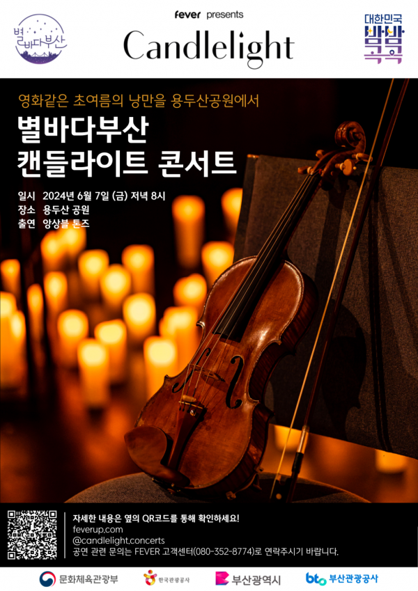 [충청뉴스큐] 부산시는 한국관광공사, 부산관광공사, 야간관광 특화도시 협의체와 함께 오는 7일 오후 8시 용두산공원 종각 옆 야외무대에서 ‘별바다부산 캔들라이트 콘서트’를 개최한다고 밝혔다.