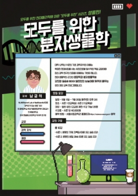 서울시립과학관에서는 일반인 눈높이에 맞춰 핵심 기초 과학을 이해할 수 있는 ‘모두를 위한 분자생물’ 강의가 진행된다. 10주 동안 2개의 시즌으로 진행이 되며 시즌1은 “생명의 기계, 단백질”이고 시즌2는 “생명의 비밀,DNA”이다.