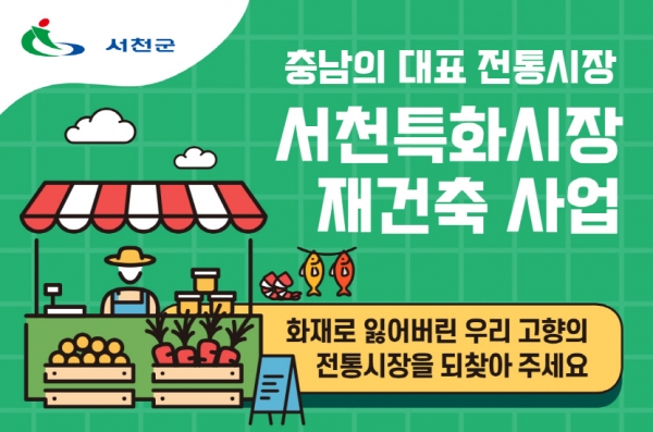 [충청뉴스큐] 서천군이 고향사랑 지정기부가 시행됨에 따라 ‘서천특화시장 재건축’ 사업을 제1호 지정기부 사업으로 선정해 모금에 나선다고 4일 밝혔다.