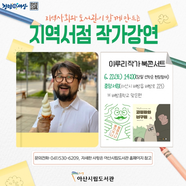 이를 위해 시는 관내 지역 인증서점을 대상으로 지난 5월 공개 모집을 진행해 배방읍에 소재한 ‘중앙서점’을 선정했으며 오는 22일 ‘이루리 작가와의 만남 및 북콘서트’를 개최한다.