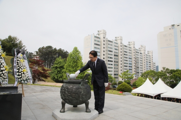 추념식은 정각 10시 전국에 울리는 사이렌 소리에 맞춰 1분간 묵념을 시작으로 헌화 분향, 추념사, 헌시낭송, 현충일 노래 제창 등의 순서로 진행됐으며 순국선열과 호국영령의 희생을 기리는 뜻깊은 시간을 가졌다.