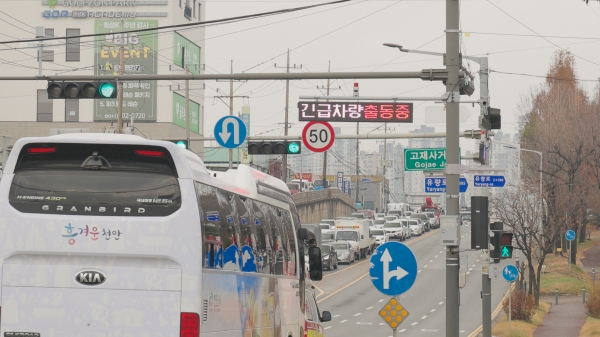 실제 긴급차량 우선시스템이 응급환자의 골든타임 확보에 도움을 줬다.