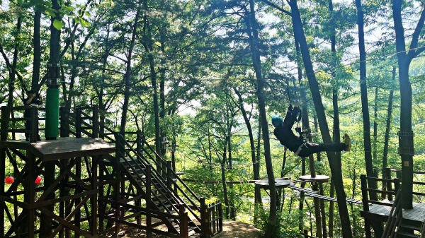 청소년용 숲 모험시설은 초등학교 6학년 이상 65세 이하가 이용할 수 있는 레포츠 시설로 총 22코스로 구성되어 있으며 신장 150cm이상, 체중 45kg 이상 100k 이하의 경우 체험이 가능하며 이용료는 15,000원이다 또한, 어린이 숲 모험시설은 만 5세 이상 초등학교 5학년 이하 어린이들이 이용할 수 있는 레포츠 시설로 총 10코스로 구성되어 있고 미취학 아동의 경우 보호자를 동반해야 이용할 수 있으며 이용료는 무료이다.