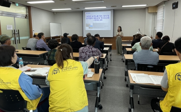 이날 진행된 농약 노출 정도 검사는 ‘농업인 농약 안전관리 기술시범 사업’으로 단국대병원과의 협력해 추진됐으며 농약 안전 사용 교육, 소변 및 혈액검사, 자가 설문 및 개별 의사 문진 순으로 이뤄졌다.