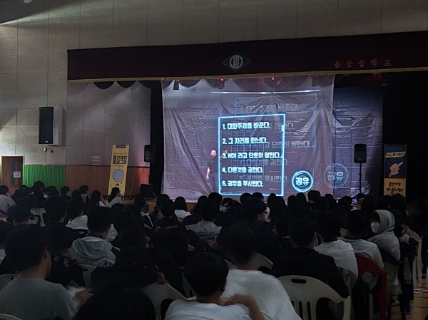 [충청뉴스큐] 아산시 보건소가 지난 7일 음봉중학교에서 ‘청소년 흡연예방 홀로그램 공연’을 개최했다.