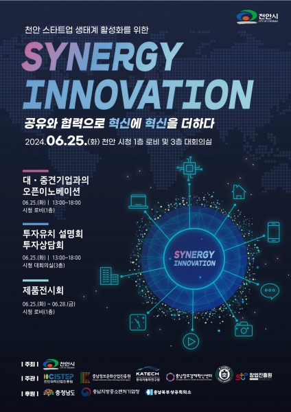 박상돈 천안시장은 “대·중견기업과의 기술협업을 간절히 원하는 지역의 스타트업이 많은 데 비해 소통할 기회가 적다”며 “이번 시너지 이노베이션을 통해 기업 간 활발한 소통과 상생·협력으로 서로 도움이 되길 바란다”고 말했다.