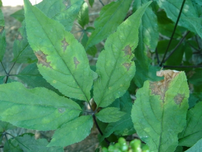 특히 곰팡이에 의해 발생하는 점무늬병은 인삼 재배에서 가장 심각한 피해를 주고 있는데 특히 어린 인삼에 발생할 경우 줄기가 말라죽어 더 이상 생장이 되지 않는다.