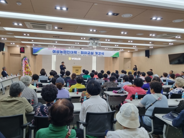 [충청뉴스큐] 부여군 여성농업인센터는 지난 10일 부여군 여성농업인을 위한 “여성농업인대학 및 취미교실” 개강식을 부여농협 유통센터 대회의실에서 개최했다.