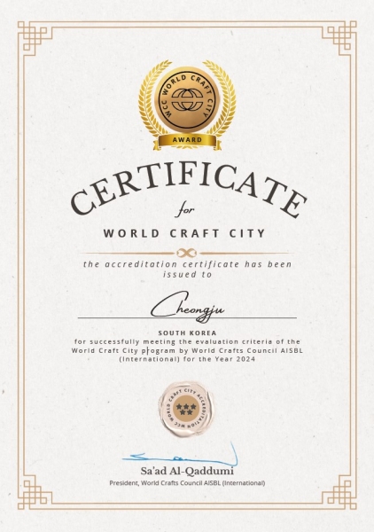 청주시와 청주시문화산업진흥재단은 17일 세계공예협회로부터 ‘세계공예도시’ 인증을 받았다고 공식 발표했다.