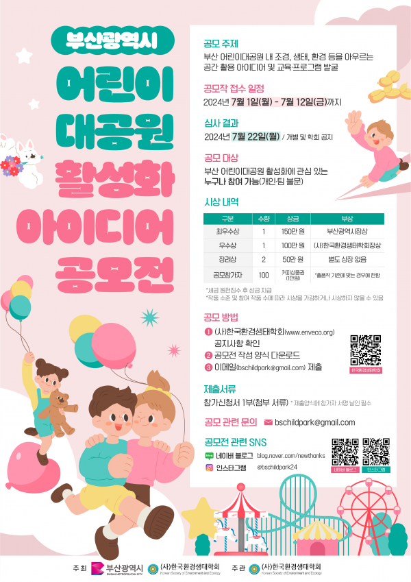[충청뉴스큐] 부산시는 ‘어린이대공원 활성화 방안 아이디어 공모전’을 열고 오는 7월 1일부터 12일까지 총 12일간 참가자를 모집한다고 밝혔다.