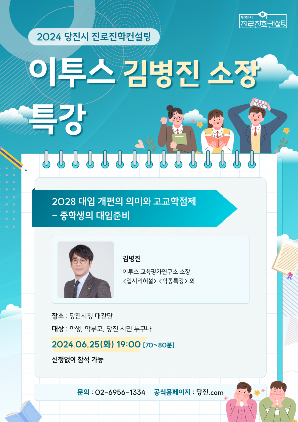 [충청뉴스큐] 당진시가 오는 25일 오후 7시 시청 대강당에서 진로진학 전문가 특강을 개최한다.