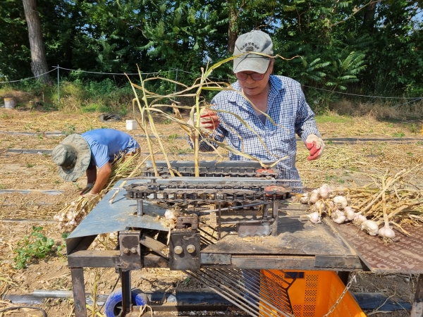 홍성마늘은 손으로도 수확이 가능하다는 장점이 있으나 최근 인건비 상승과 일손 부족으로 수확 기계화 기술 도입이 불가피해졌다.