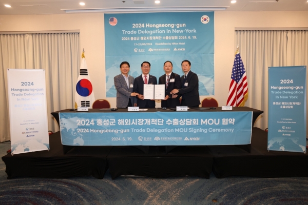 이용록 홍성군수는 “이번 협약을 통해 홍성군 기업들은 충남경제진흥원의 체계적인 지원, 뉴욕한인경제인협회의 풍부한 현지 경험을 바탕으로 뉴욕을 시작으로 글로벌 도약을 위해 함께할 것”이라며 “앞으로도 글로벌 판매망 확충을 통해 지역 내 기업들이 성장할 수 있는 기회를 만들어 나가겠다”고 밝혔다.