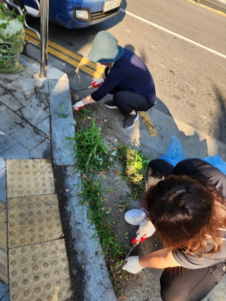 이날 통장협의회와 동 직원 등 70여명은 잡풀제거 빗물받이 점검·청소 등을 실시해 장마철 폭우 피해를 예방했다.