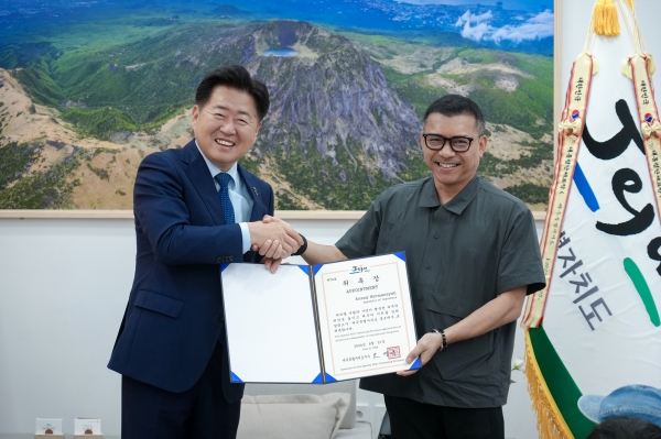 오영훈 지사는 이날 오전 제주도청 집무실에서 아낭 헤르만샤 씨와 그의 아내인 아산띠 애쉬 가족 일행을 만나 홍보대사 위촉장과 기념품을 전달했다.