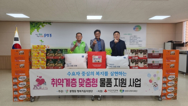 한편 맞춤형 물품지원 사업은 저소득 취약계층을 대상으로 분기별로 가구 특성에 맞는 물품을 지원하는 수요자 중심의 맞춤형 복지사업으로 봉명동의 대표적인 특화사업이다.